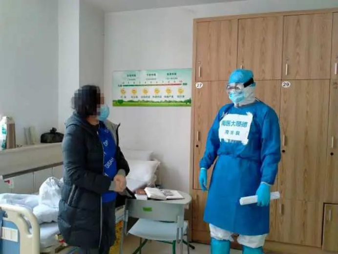 我们医疗队的护士姑娘们在多次与老人的交流中,了解到老人非常想念自己同样被隔离的子女,非常担心他们是否被自己传染,于是护士们设法获得了老人家人微信,让他们进行了视频通话,看到视频里家人的状态良好,老人进一步打开心结,积极配合医疗护理,与医护人员有了更多的交流......