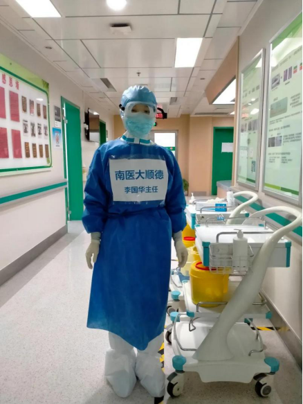 李国华,是顺德医院医务科副科长兼任消化内科副主任、主任医师,也是2月13日从顺德出发驰援湖北医疗队的领队、临时党支部书记,也是队中年龄最大的队员。