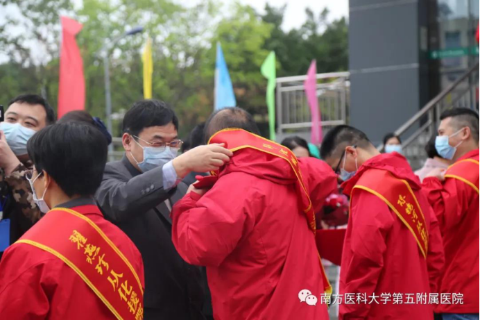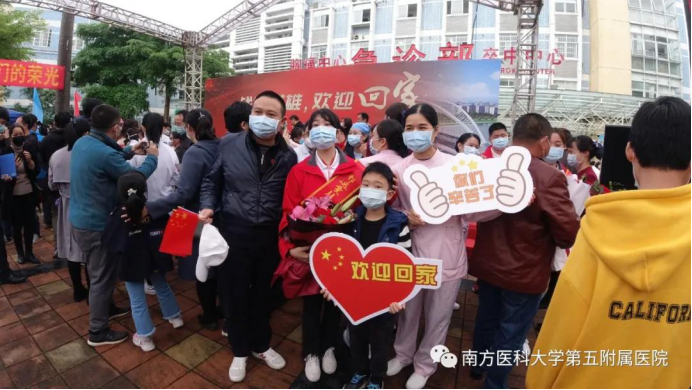 南方医科大学副校长文民刚表示,这一个多月以来,队员们在前线迎难而上、忘我工作,同时间赛跑、与病魔较量,用热血誓言和英勇事迹生动诠释了医者的“大爱无疆”和“南医人”的责任担当,学校感谢你们,人民感谢你们,国家感谢你们,更不会忘记你们!