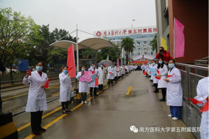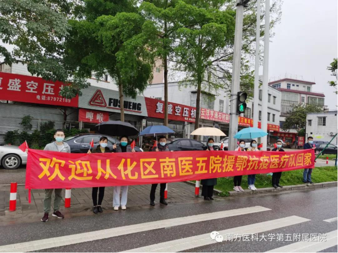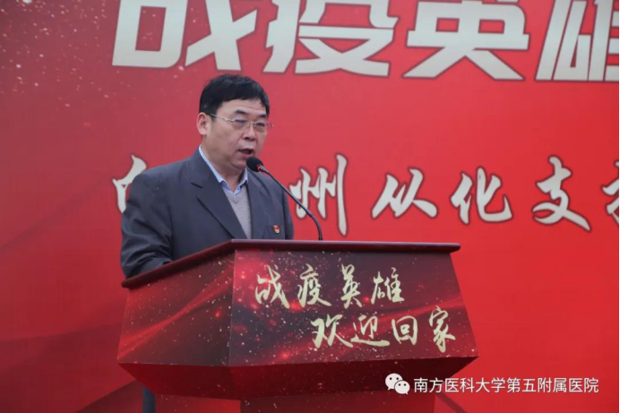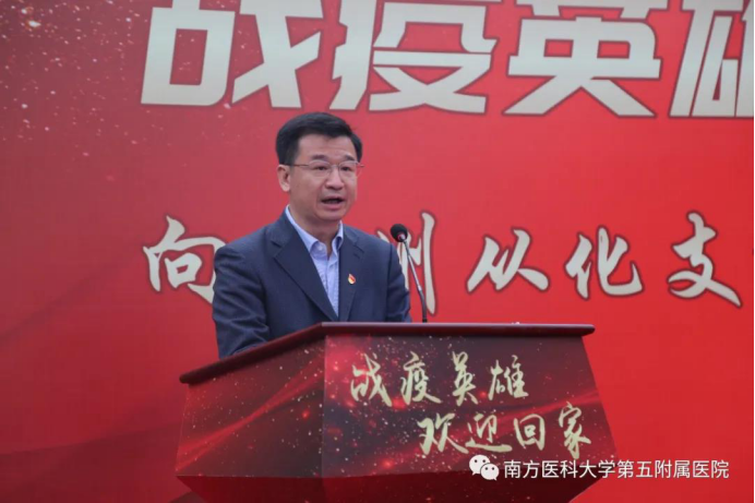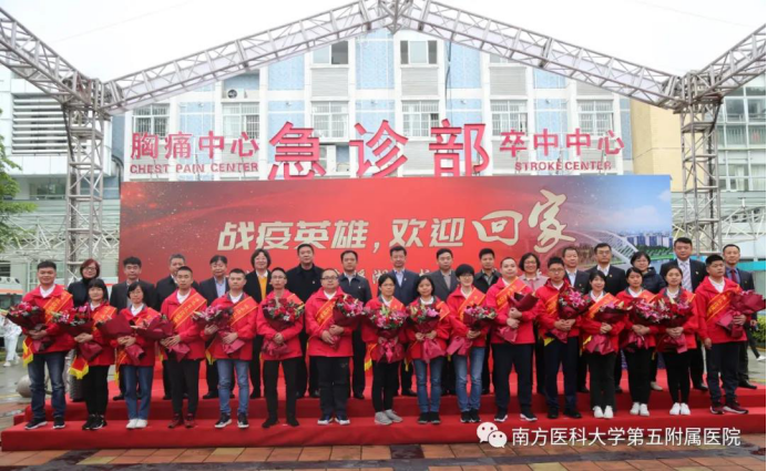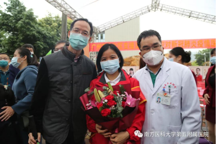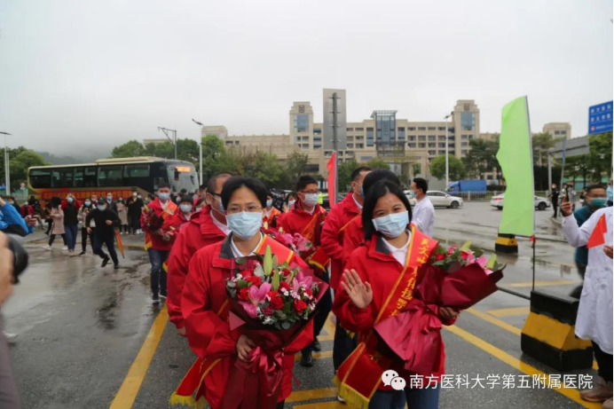 4月3日,第五附属医院支援湖北抗疫医疗队员回到家乡的怀抱。从化区委书记庄悦群,南方医科大学副校长文民刚,区长蔡澍,区人大常委会主任林奕孜,区政协主席谭凯平,区委副书记、区政法委书记王建红,副区长张文虹等来到医院迎接抗疫英雄归来。