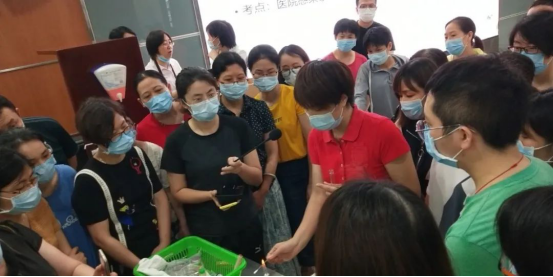 第一天培训结束后,按照培训流程,所有院感兼职人员随机抽签分4个小组模拟临床收治患者的应急演练。