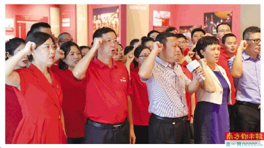 “我志愿加入中国共产党,……随时准备为党和人民牺牲一切,永不叛党。”在抗疫展品的见证下,医护党员们展开一面党旗,在南医三院党委书记许明辉的带领下,重温了入党誓词。据了解,经受了“战疫”和组织的双重考验,南医三院有27名医疗队队员光荣入党。