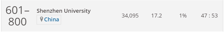 在72所内地上榜高校中,广东共有7所高校上榜,除南科大、中大外,华南理工大学排名21位,深圳大学41位,暨南大学52位,汕头大学59位,南方医科大学60位。
