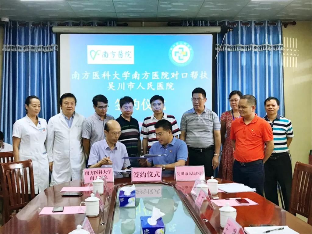 9月15日,南方医科大学南方医院与吴川市人民医院结为对口帮扶医院,举行对口帮扶医院揭牌仪式,在揭牌仪式后开展大型义诊、教学查房、学术讲座、手术演示等系列活动。南方医院副院长杨洪波、医务处处长吴志华、口腔科主任吴补领、呼吸科主任蔡绍曦、研究生院副院长凌志海等领导出席活动。