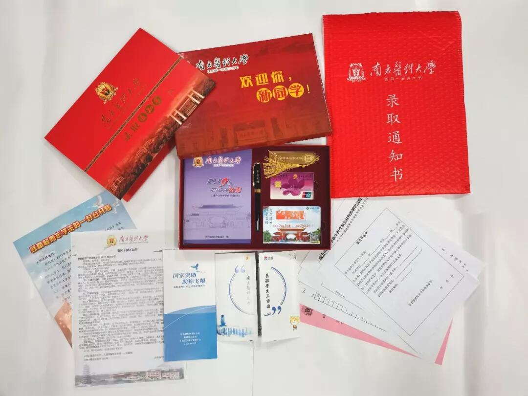 今年南方医科大学录取通知书依旧沿用了喜庆的红色基调,以示对新生的热烈欢迎。整体设计庄重典雅,背景浅印南方医科大学广州校本部的大门,象征南医大对莘莘学子开放包容。南方医科大学是广东省最早在录取通知书上使用AR技术的高校。今年的录取通知书升级了原有的AR技术,在虚拟视听环境中,给大家带来更加逼真的视、听、触等感觉。