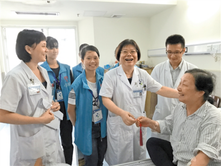 在她的积极推动下,2012年,广中医一附院成立了“天使之翼”志愿者团,让更多医学生以志愿者身份走进病房,通过叙事医学的方式开展志愿服务。