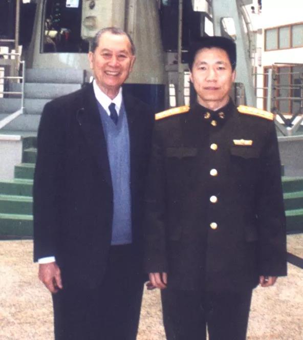 2004年,钟世镇(左)与杨利伟合影于航天医学研究所