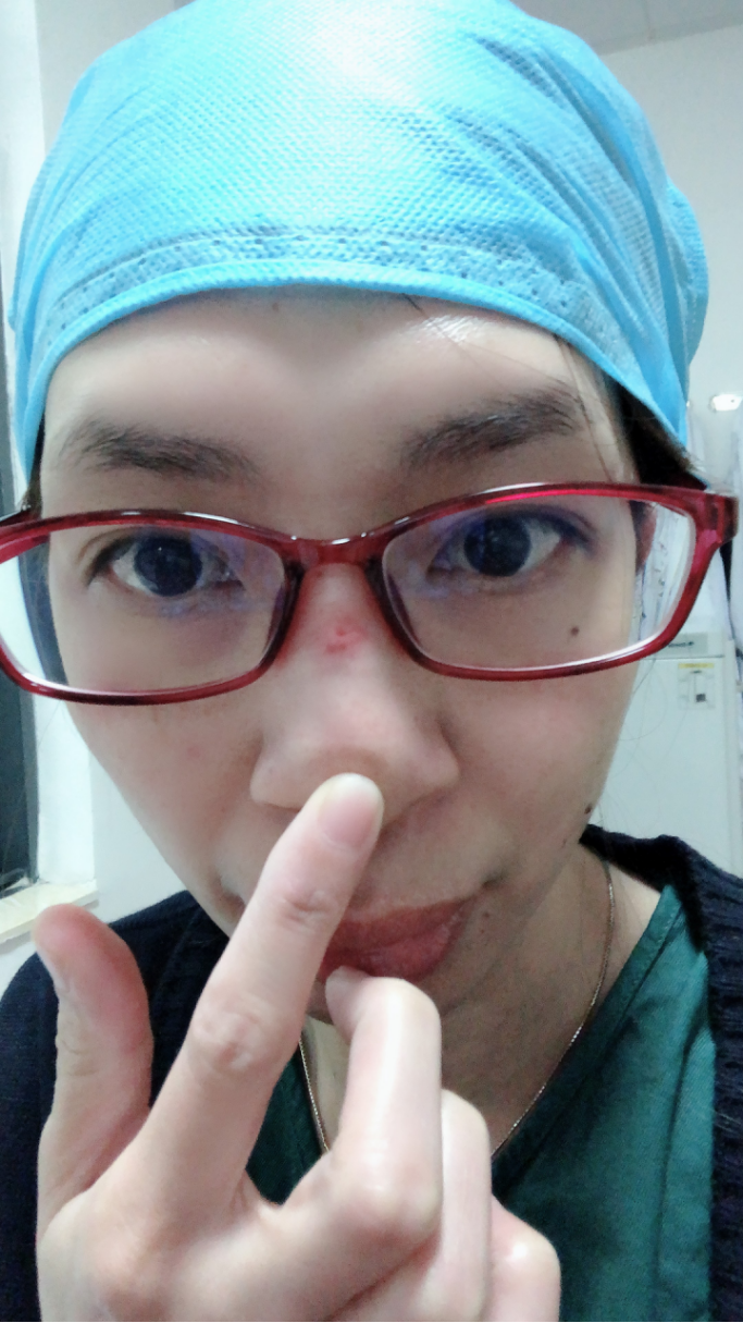 门诊部护士钟燕利同样是始终在发热门诊坚守,到点该下班了,她总会再待一会,严格关注好交班后的工作会不会遇到突发状况。看,直到她摘下口罩,才发现鼻梁早已被口罩磨破。