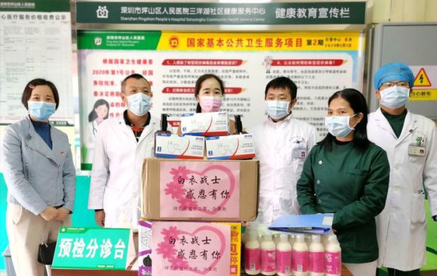 据介绍,大年初一,坪山区人民医院全员到岗投身防控疫情工作的一线,坪山街道闻悉马上送来水果慰问一线人员。同时,坪山街道还组织协调坪山社区基金会等单位捐赠1000个N95医用口罩、2000个一次性医用外科口罩、100瓶消毒水等一批防疫物资,还有水果、豆浆等生活物资,关爱关心一线医护人员,为他们的健康保驾护航。