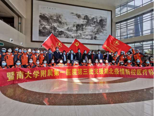 暨南大学附属第一医院医疗队65人中,包括17名医生(呼吸科、危急重症医学科以及心理科)、48名护士,他们抵达武汉后将与其他医院合作接管一个重症病区。目前,该院已累计派出了89名医护人员。这次队伍里,增加了两名精神医学科医生,他们将为前线患者及医生提供全面的心理健康保障。