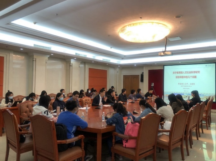 王晓丽以“关于教育部人文社会科学研究项目申报中的几个问题”为题,从申报项目类型的选择、申报题目的选择、申报书内容的把握、申报书撰写中的具体问题四个方面详细阐述了教育部人文社科项目申报时需关注的重点。她着重介绍了教育部人文社科项目中的高校思政课专项、辅导员专项,指导辅导员们如何撰写项目申报书。