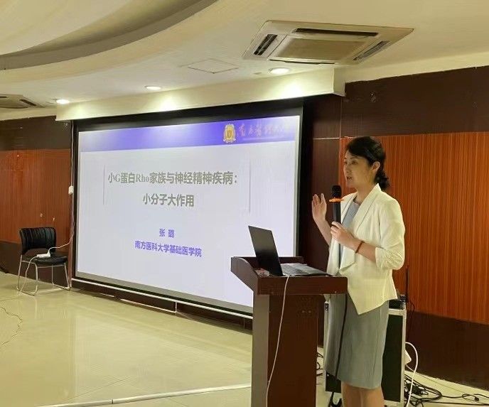 张璐教授围绕小G蛋白Rho家族对神经精神疾病突触可塑性调控机制展开的研究作了详细的介绍。课题组针对药物成隐、神经退行疾病和阿尔兹海默病的研究发现,小G蛋白 Rho家族在神经精神疾病中功能的多样性与复杂性,及作为药物靶标的重要意义。