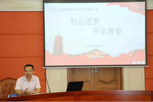 仪式后,李爱军就防疫防控、学生心理健康问题指引以及学习建议与硕士班新生们开展了新生教育讲座。