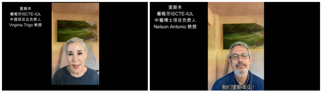 受到疫情防控影响,里斯本大学学院中国项目总负责人Virginia Trigo、博士项目主任Nelson Antonio通过视频形式向大家带来诚挚的问候和祝福。Virginia表示,继续深入学习是非常重要的,每一位同学在留学路上都会遇到机遇和挑战,希望各位同学无论成功之路有多么艰辛,都不要轻言放弃。