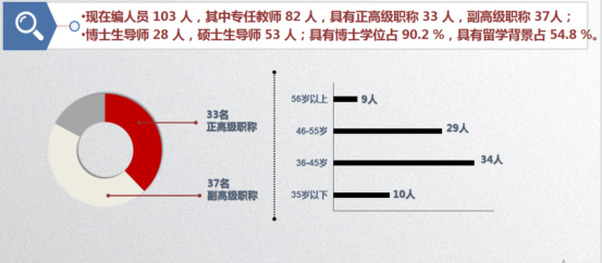 学院师资队伍实力雄厚,朝气蓬勃,结构合理。现有正式在编人员103人,专任教师82人,以中青年教师为主体。其中:正高33人,副高37人,中级12人,研究生导师53人,其中博士生导师28人,具有博士学位教师占专任教师总数90.2%以上,具有留学背景的教师占比54.9%。拥有国家杰出青年科学基金获得者 2 人,科技部“中青年科技创新”领军人才 1 人,“百千万人才工程”国家级人选 2 人,国家优秀青年科学基金获得者 1 人,及其它各层次、领域优秀人才项目或称号64人次。
