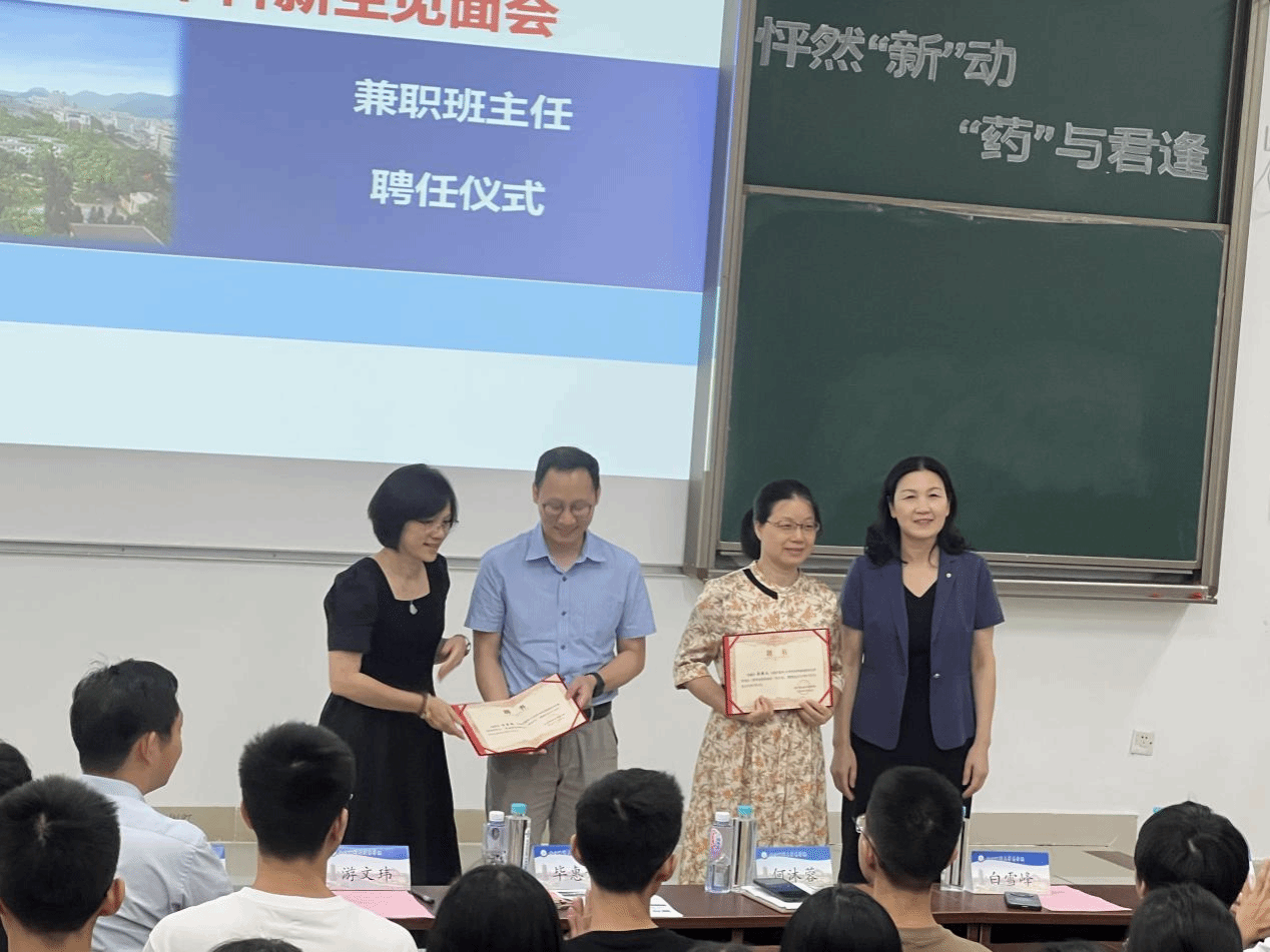 院党委副书记白雪峰宣读兼职班主任聘任决定。毕惠嫦为药学创新班、临床药学卓越药师班、药学、临床药学兼职班主任颁发聘书。兼职班主任制度是学院全员育人的重要组成部分,旨在充分发挥专业青年教师在学生培养过程中的指导作用,走近学生、关心学生、帮助学生,助力学生专业能力提升、促进教风学风建设。