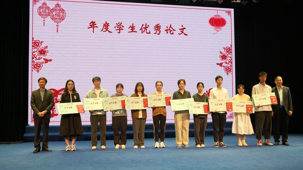 随后颁发了“年度优秀论文”奖,获奖者分别为:丁瑞明、何雪梅、罗振业、王琬瑜、蔡晓雯、石皓、吴煜凡、邹丽芳、梁露莹、张国勇。同时颁发的还有“省部级以上获奖团队及个人”:王亚莉等13人获“2022-2023年度广东省优秀研究生会”,梁露莹、杜佳希两支队伍获“第九届全国大学生基础医学创新研究指导老师暨实验设计论坛银奖”,王洋(男)、教惠雯团队获“广东省教育厅2023年5.25大学生心理健康月系列活动优秀作品三等奖”、王洋(女)获同一项目优秀个人奖,左安娜获2022年度中国大学生自强之星,曾奕获2022-2023年度广东省优秀共青团员,季垣昊获2022年广东省大中专学生志愿者暑期文化科技卫生“三下乡”社会实践活动优秀个人。
