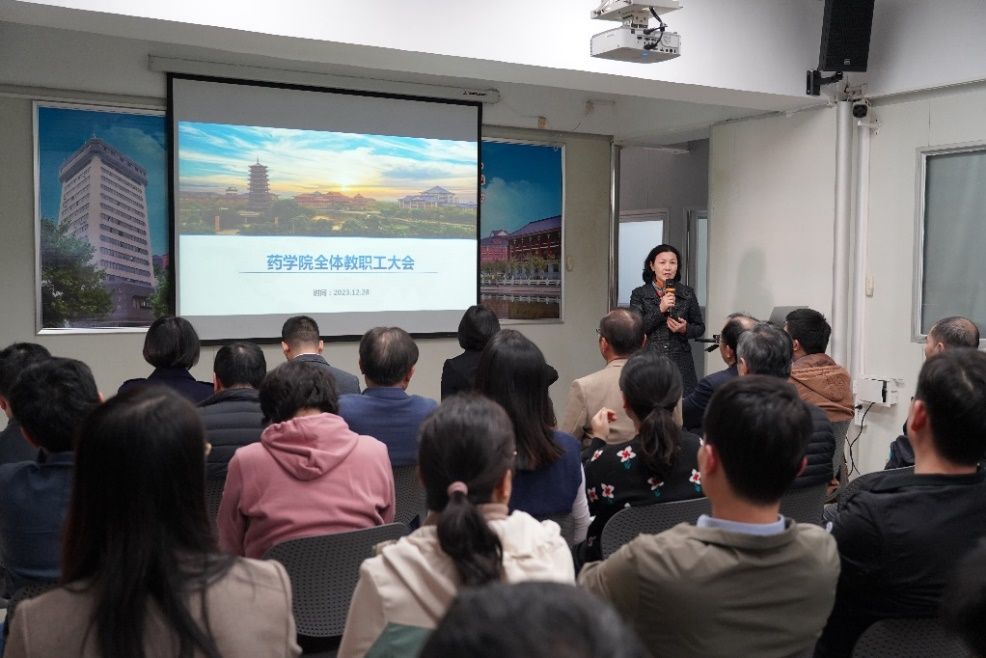 12月28日,药学院召开全体教职工大会暨创新群体主任工作交流会。会议由学院党委书记何沐蓉主持,全体教职工参加。