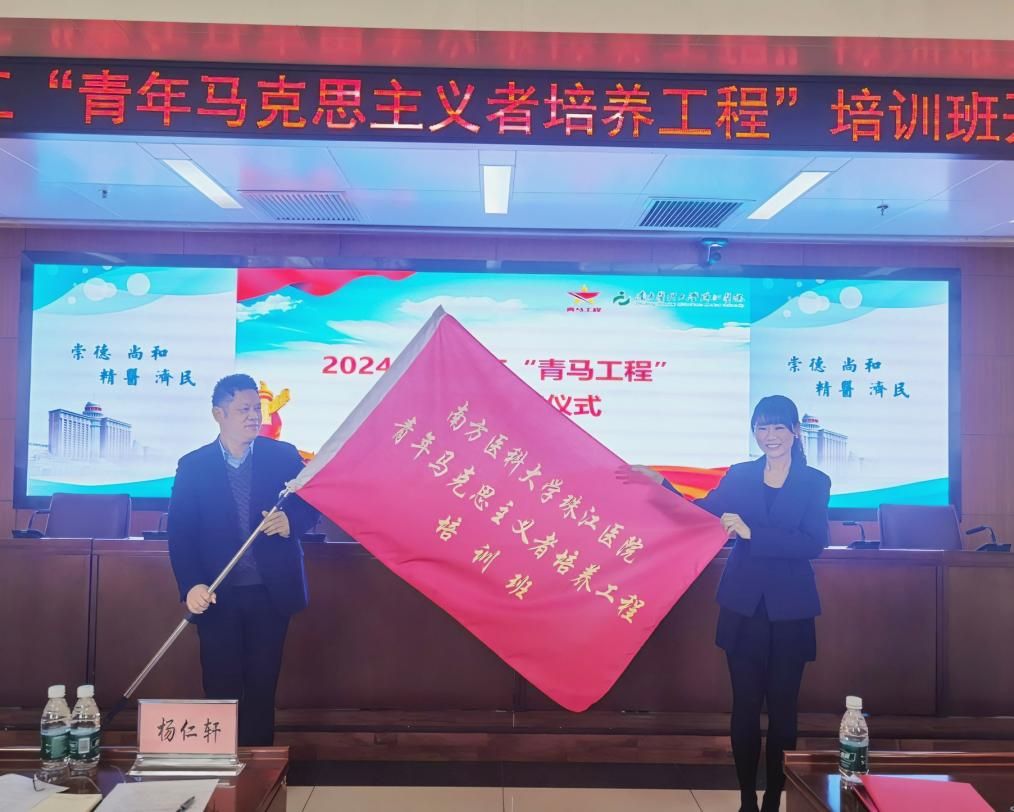 杨仁轩为青马班授旗,并对本期青马班学员提出三点希望和要求:一是要勤奋学习,坚定理想信念。坚持学思结合,不断增进对党的政治认同、思想认同、理论认同、情感认同,更好地成长为具有坚定的马克思主义信仰、德才兼备、全面发展的社会主义合格建设者和可靠接班人;二是要注重实践,立足岗位建功。坚持在干中学、学中干,将理论学习同实践锻炼结合起来,持续努力,久久为功;三是要积极参与科室团支部、青年文明号以及文明科室创建活动,青年作为医院生力军要努力提升自己的精神面貌、奋发有为、团结协助,为医院高质量发展做贡献。