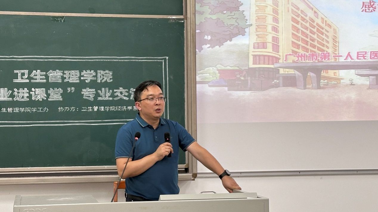 为深化学生对医院医保行业的认知,帮助卫管学子规划职业生涯方向,6月27日下午,卫生管理学院第四期“行业进课堂”专业交流会在顺德校区春华堂举行。此次活动由学院学工办和经济学系党支部举办,特邀广州市第一人民医院医保办公室主任刘敬为顺德校区公共事业管理专业的100余名学子分享行业工作经验和感悟。