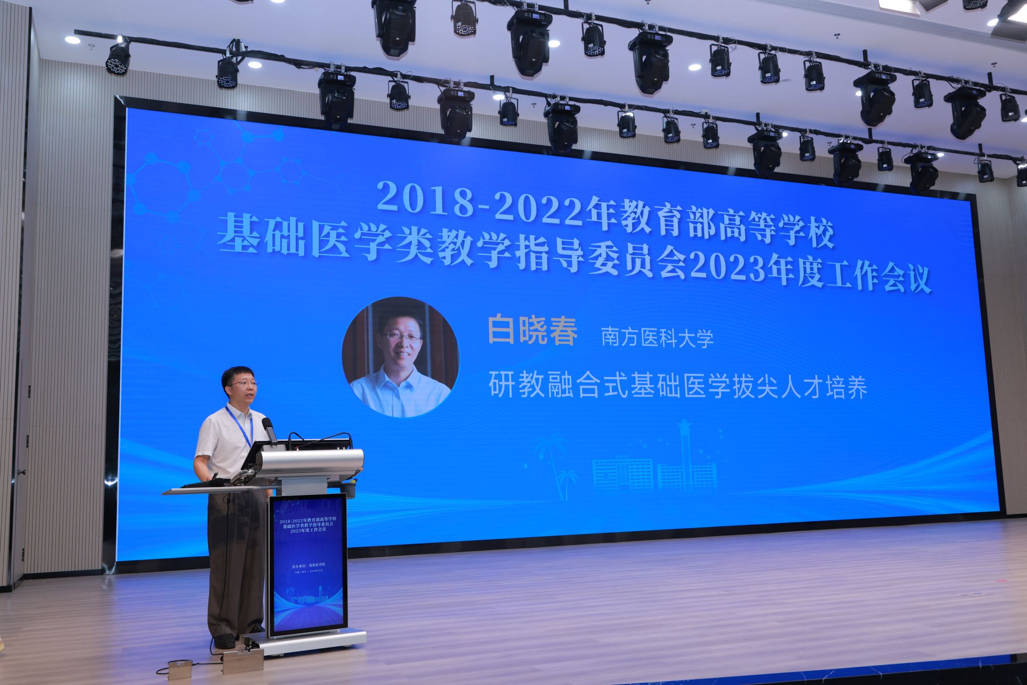 近日,受教育部高等学校基础医学教学指导委员会邀请,基础医学院院长白晓春出席教指委年度工作会议,作了“研教融合式基础医学拔尖人才培养”的专题报告,向全国基础医学教学领域的专家分享我校进行基础医学拔尖人才培养的工作经验与成果。专题报告以“研教融合式培养“的核心,以解剖学教研室育人经验获得国家教育教学成果奖一等奖为例,针对“科研创新与课程教学结合脱节,科研入门晚…