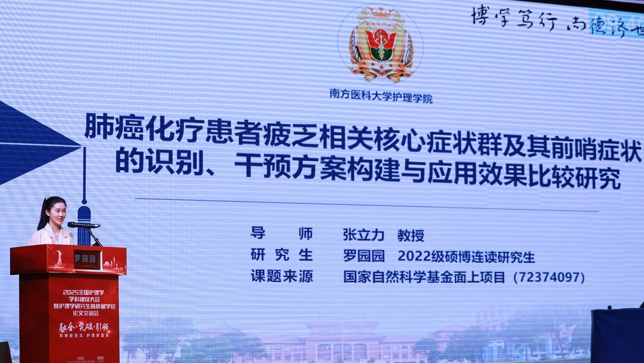10月23日至26日,在由国务院学位委员会护理学学科评议组举办的“2025全国护理学学科建设大会暨护理学研究生高质量学位论文交流会”上,我校护理学院教授张立力指导的2022级硕博连读研究生罗园园,凭借其出色的研究成果,从众多候选人中脱颖而出,被推选为全国仅有的4名作大会口头报告的博士研究生之一。当前,肺癌化疗患者普遍遭受多重症状协同困扰,症状群发生率居高不下,而临床干预…