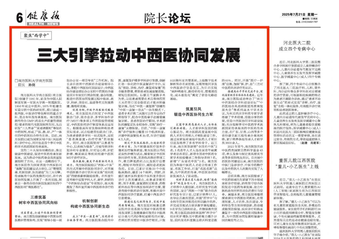 【健康报】三大引擎拉动中西医协同发展