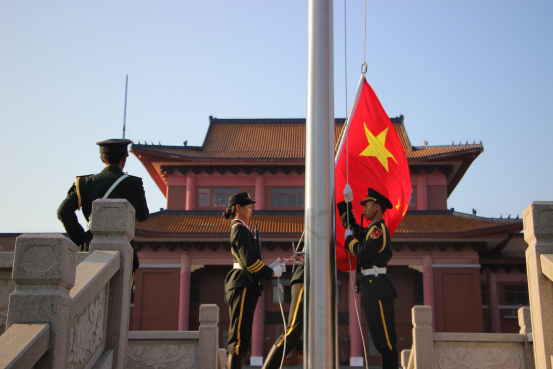 9月30日是烈士纪念日,清晨7点30分,顺德校区行政楼前举行了迎新生、庆华诞升旗仪式。副校长文民刚,教务处、学生处、图书馆、校团委、通识教育部领导,各书院、学院领导,辅导员以及2018级全体新生共同参加了升旗仪式。 五星红旗在校国旗护卫队铿锵有力、整齐划一的步伐中被护送至升旗台。伴着军乐团演奏的国歌,全体师生行注目礼,在大家注视下,五星红旗冉冉升起,迎风飞舞,现场庄…