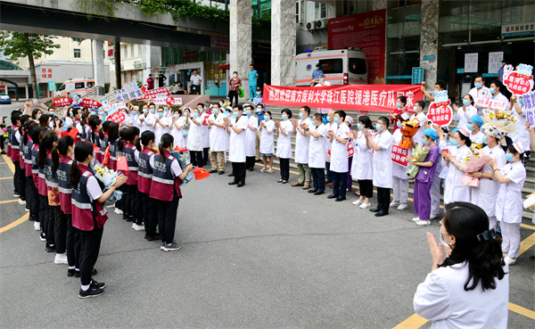 5月19日,南方医科大学珠江医院急诊前广场,随着大巴车开进医院,珠江医院援港医疗队20名队友结束14天的休整,终于回家啦。珠江医院全体领导班子以及机关处室领导、科室主任和同事们热情迎接。同事们举着欢迎牌子“白衣执甲,英雄归来”“致敬最美逆行者”“粤港同心 共战疫情”等牌子,高声欢呼欢迎“战友们”回家。“珠江医院援港医疗队20人圆满完成任务,现已全部平安返回!”队长钟…