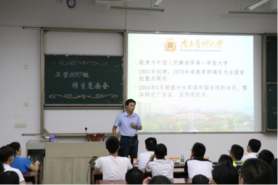 迎新活动结束后,为帮助2017级新生尽快适应大学生活,熟悉学院基本情况,增强专业认同感和归属感,9月9日晚,基础医学院在顺德校区春华堂4103教室召开了2017级新生见面会,全体院领导、党政办主任、教研室主任、学院办公室、学工办负责人及辅导员参加见面会。会上,院长白晓春代表学院全体师生向2017级新生表示了诚挚的祝贺和热烈的欢迎。