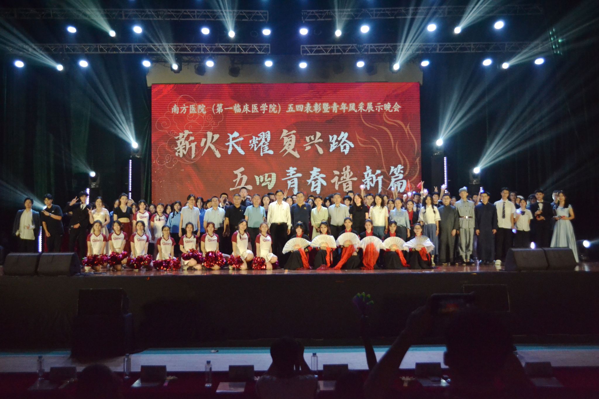 5月8日,2024年南方医院(第一临床医学院)五四表彰暨青年风采展示晚会在顺德校区综合馆举行,顺德校区管委会书记王宏、管委会主任许明辉、团委书记闫晓倩、学生处副处长吴爱军,南方医院党委书记蒋鸿、副院长黄北奇以及医院各部门领导代表、医院教职工代表和学生共计1500余人参加了晚会。此次晚会主题以“薪火长耀复兴路,五四青春谱新篇”为主题,分别从“穿越泥泞,追寻信仰”“前仆…