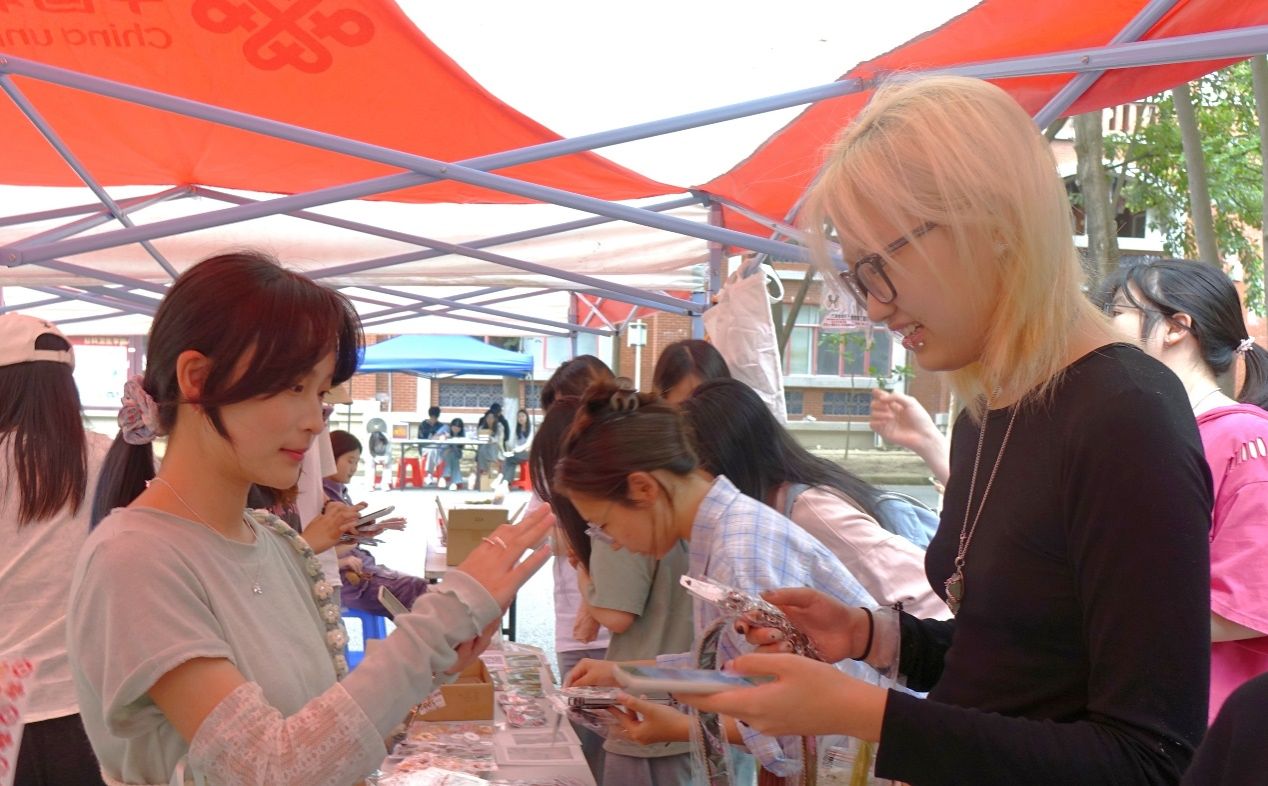 4月13日,公共卫生学院团委以“模拟创业,致敬青春”为主题举办第十四届创业模拟大赛,7支创业团队在春风园门口搭建创意市集,售卖自制餐点、手作饰品及原创设计商品,通过摆摊实践深化学生对市场运营、成本管理的理解,展现青年学子的创新思维与协作能力。为促进消费,主办方摊位设有“盲盒小挑战”的子活动。顾客消费后可凭贴纸兑换任务盲盒,挑战30秒快问快答、汉字拆解、数字华容…