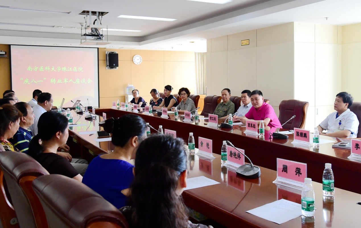 7月31日,珠江医院召开转业军人座谈会。来自医院医疗、教学、科研、护理系列的转业军人代表,退休人员、援藏援疆人员、抗震救灾人员和出国留学人员中的转业军人代表共20余人参加了座谈。